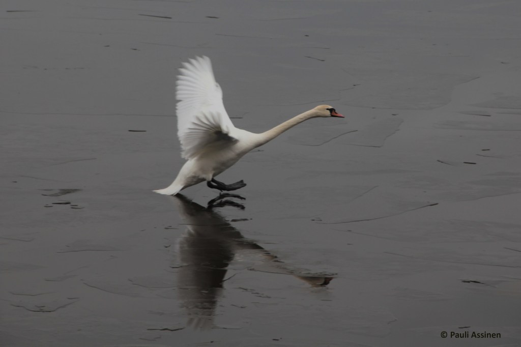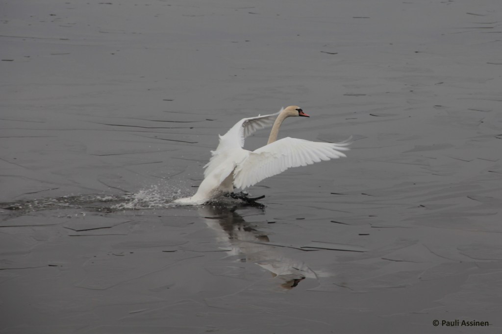 MOMOTUSTA Tallinnan kevät,kyhmyjoutsen laskeutuu,eikä kestä jää Kyhmyjoutsen (Cygnus olor) kuvattu Tallinnassa 13.4.2011.